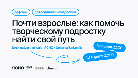 Universal University совместно с сервисом онлайн-психотерапии ЯСНО продолжает цикл паблик-токов «Почти взрослые: как помочь подростку найти свой путь». Весной 2026 года проведем открытую встречу о профессиональном самоопределении — одной из ключевых тем старшей школы и периода поступления.